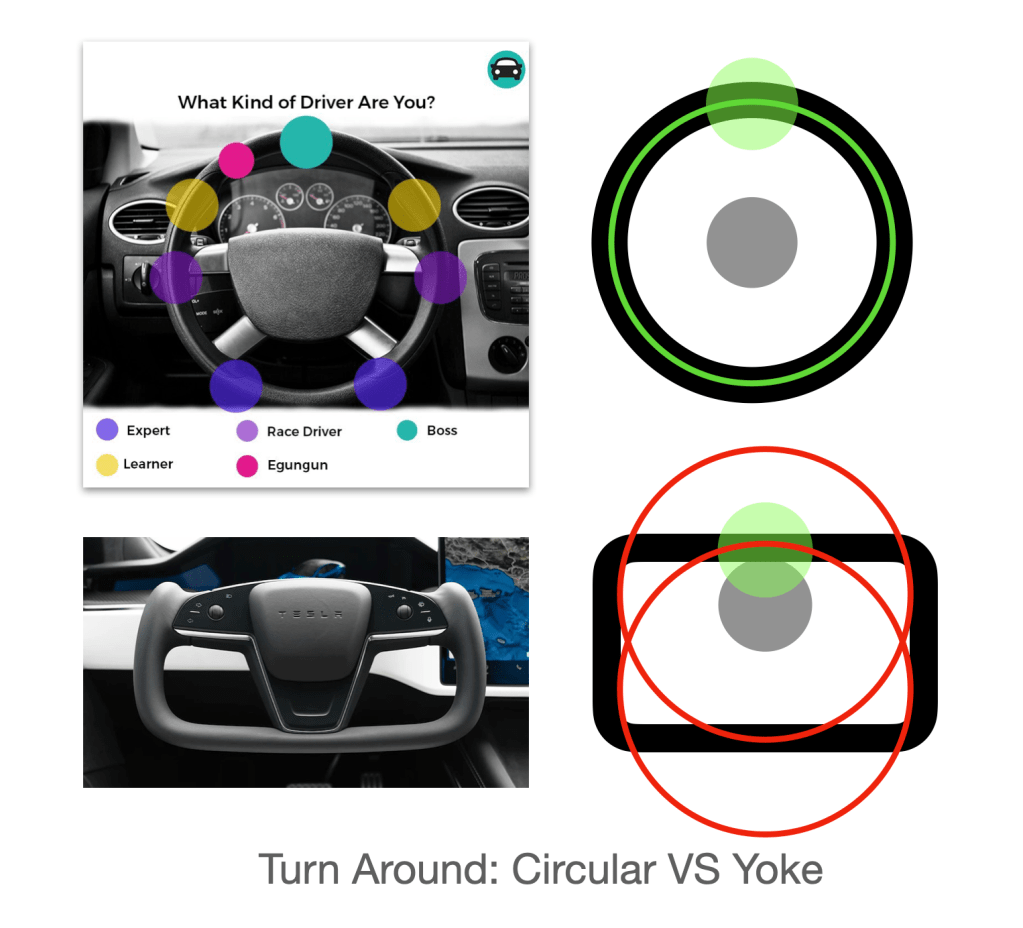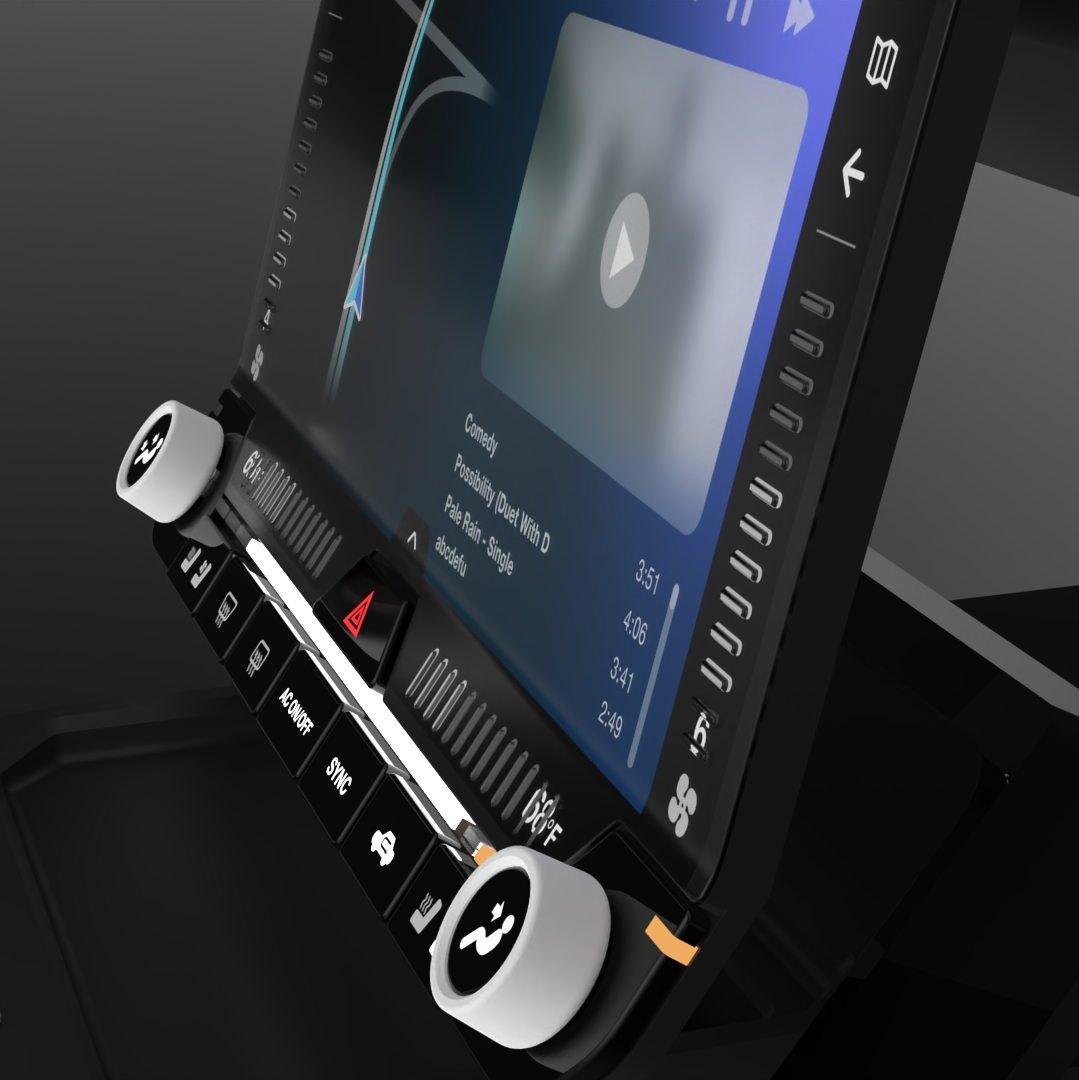 Yoke forces the driver to hold the steering wheel at a fixed location. Otherwise the center of arm’s circular movement will offset the steering wheel’s center point.Touchscreen Input