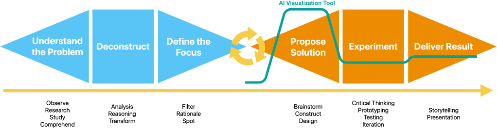 Artificial Intelligence, specifically talking about image generator, majorly impacts the Develop and Deliver stage. Most of those impacts, I propose, will be positive. The diffusion model actually helps me learn a new design field faster, and saves tons of time on form visualization. It is especially a great learning tools for the beginner, like me, a newbie in car design who probably will never dive into this field as a career. AI’s fast visualization enables me to experiment with my design and learn car design efficiently.