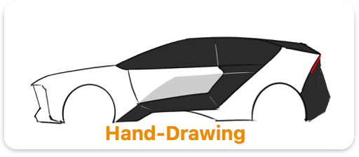 The first attempt, though the output is not my desire, demonstrated how capable AI is. It produces visualization with prompts at the speed my hands can not reach. Also, the irritation shows how image generation works, and you can spot many traits of existing cars on those renderings: