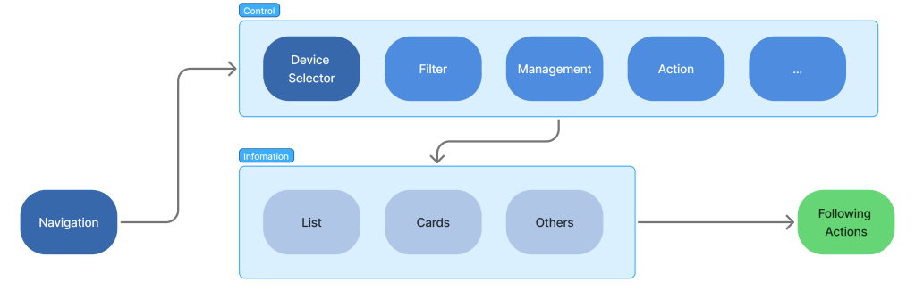 - Control Level: Mid-tier information filtering that shapes what data is displayed and how it’s presented (device selection, content actions, and display formatting)
